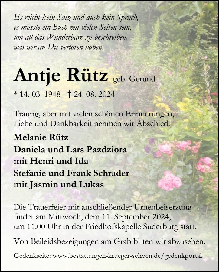 ich teile Ihre tiefe Traurigkeit über den Verlust eines bemerkenswerten, sympathischen Menschen, der mir viel bedeutet hat. Meine Erinnerungen werden geprägt von ihrer Freundlichkeit, ihrem Fleiß, von Hilfsbereitschaft und Lebensfreude. Schön, dass ich sie ein Stück ihres Lebensweges begleiten durfte. Meine Gedanken sind bei der Familie.